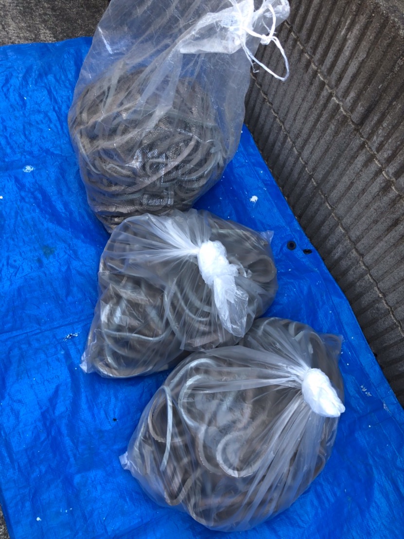 2階建ての建物でも目地部分のシーリング材をすべて交換の為に切り取ると、このぐらいの廃棄するシーリング材の量になりますよ。