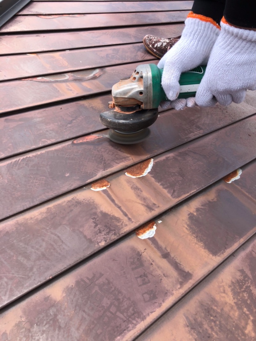 屋根自体も雨水がまわってサビの進行が早まっていましたので、サビを落としてサビ転換剤を塗布して進行を止めて、シリコンの一つ上の屋根塗料ラジカルハイブリッド塗料にて塗装しました。