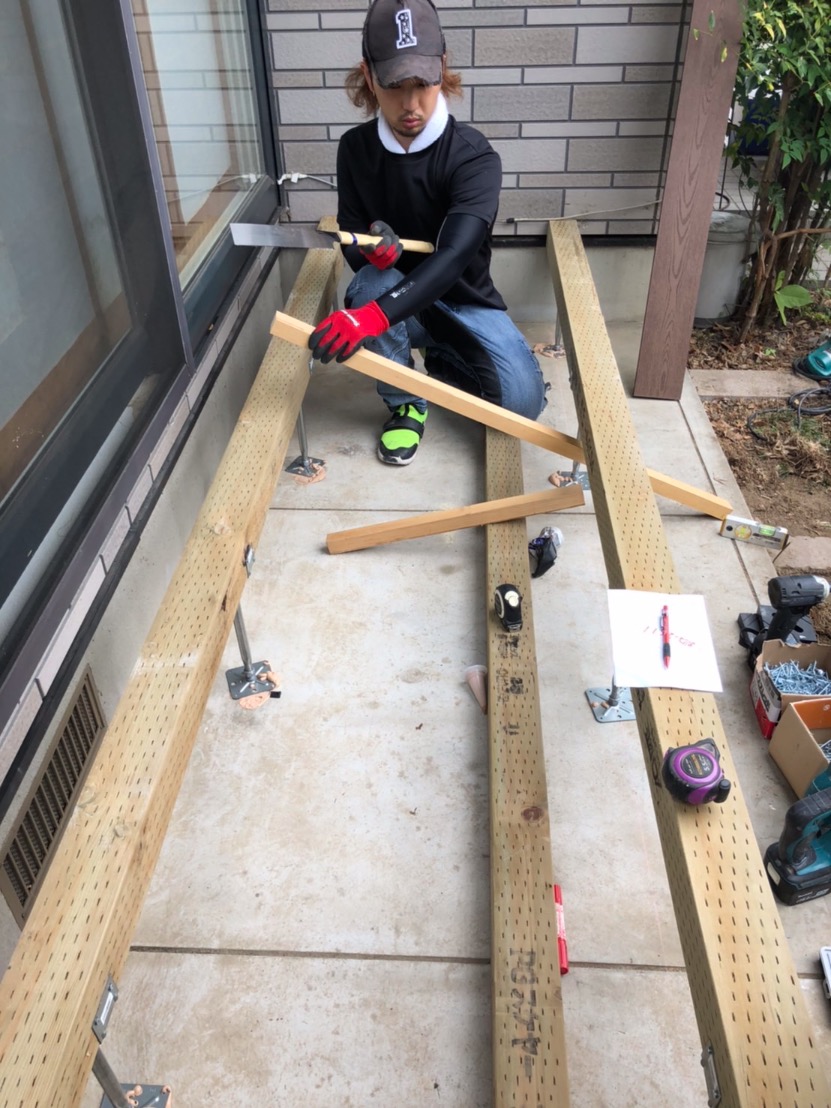 木材で加工して作っていくウッドデッキ。