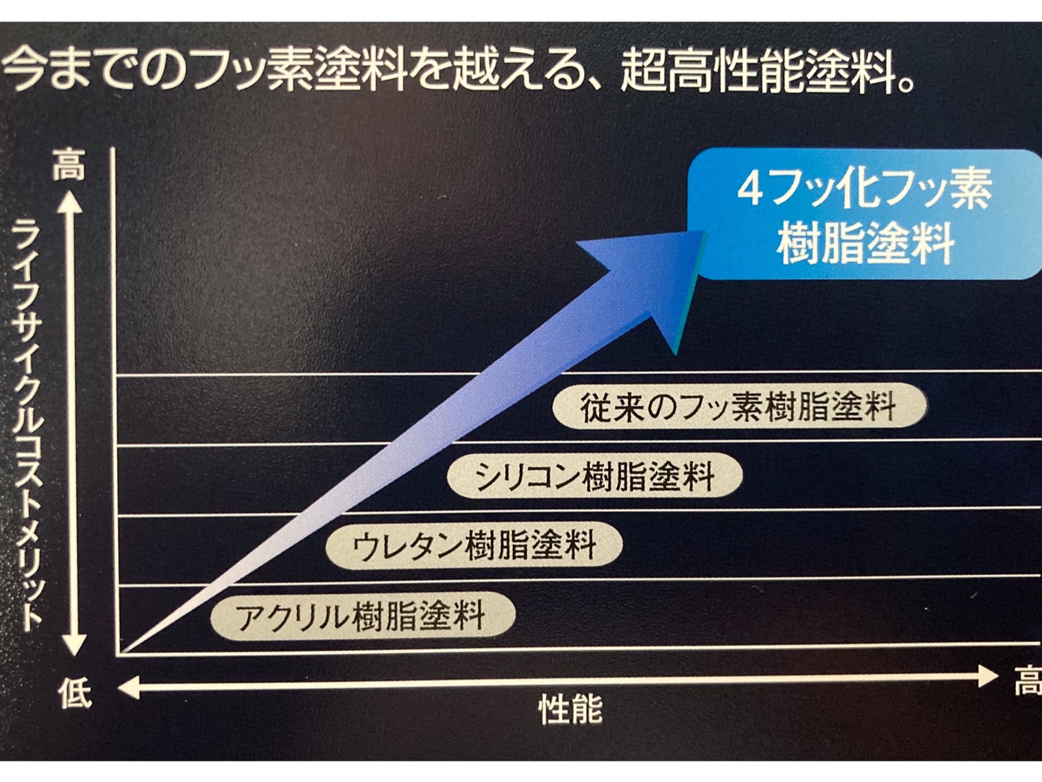 もちろん製品の価格も高く通常のラジカル塗料の4倍程度の仕入れ価格になっております。
