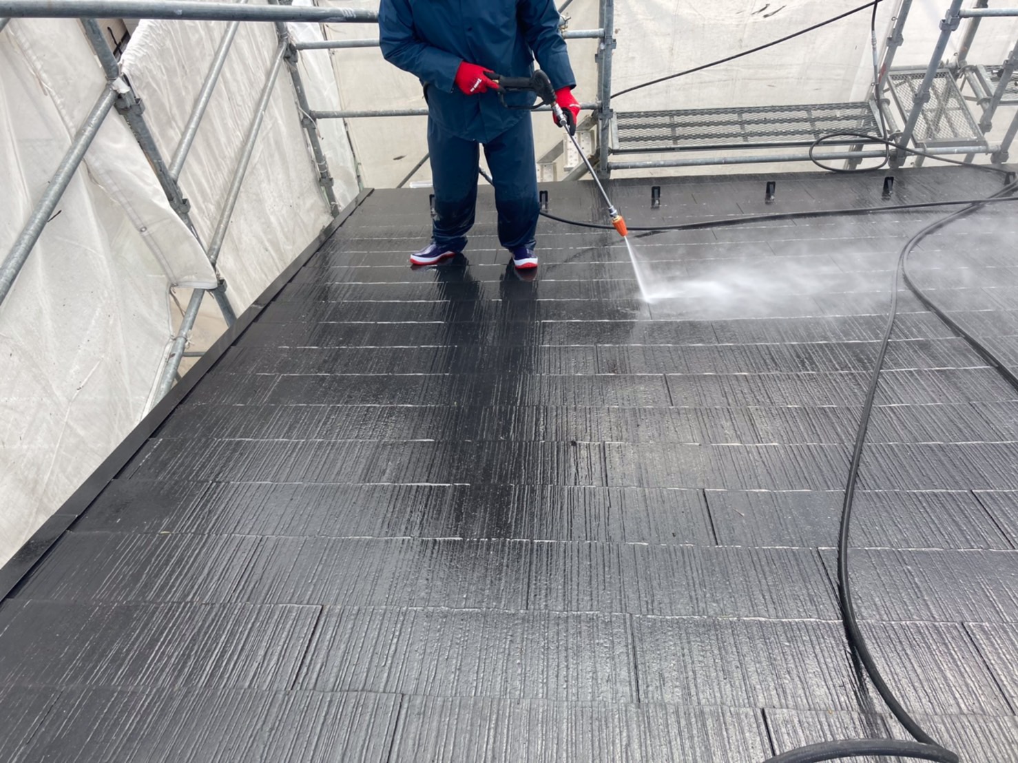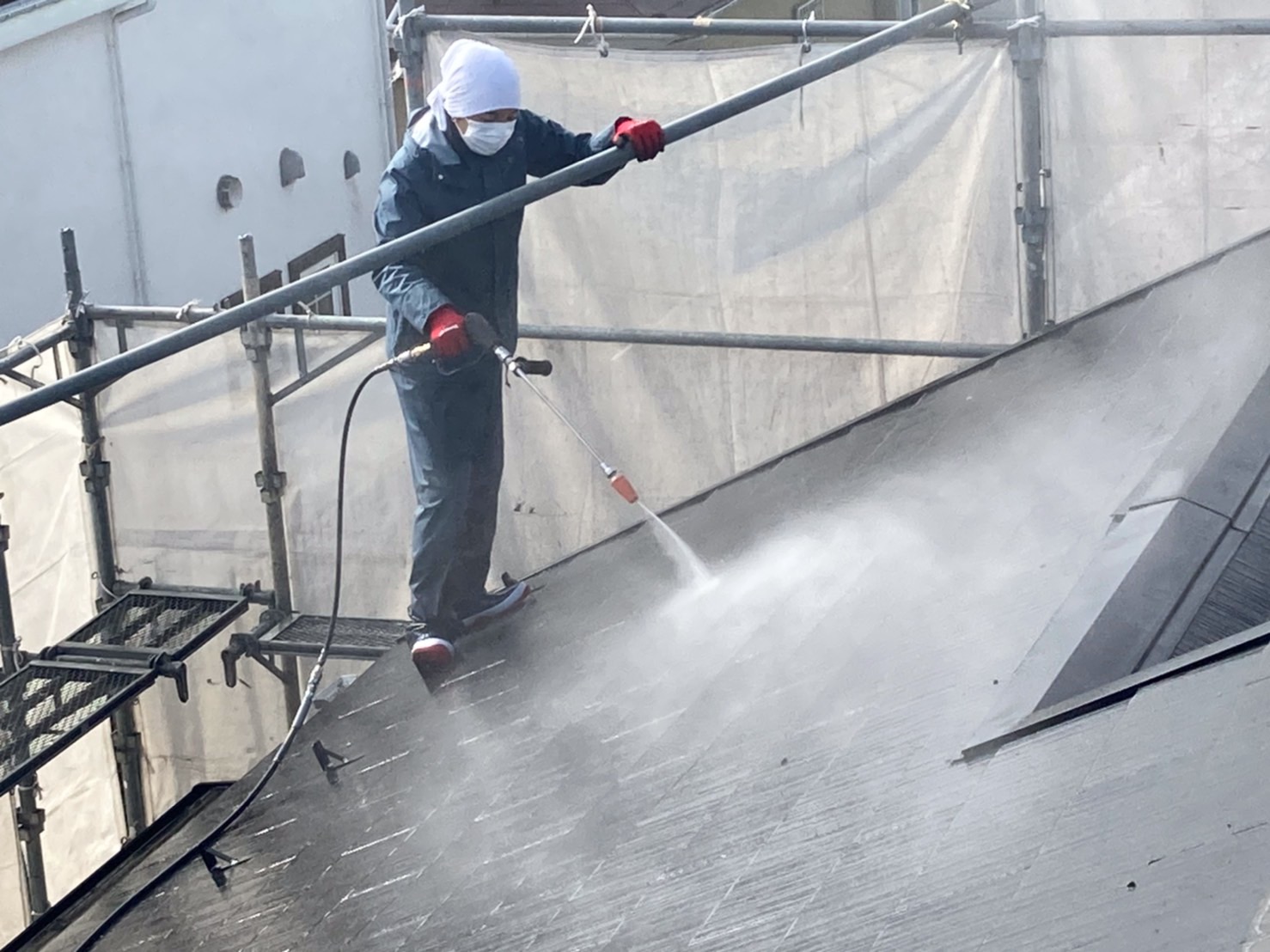 塗屋はスレート屋根の高圧洗浄を本日、施工しております!