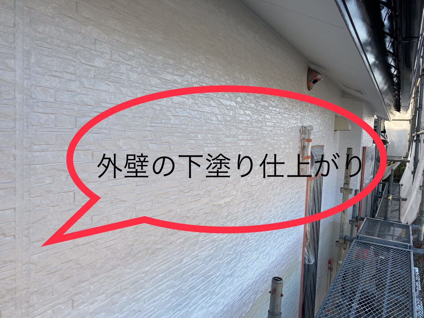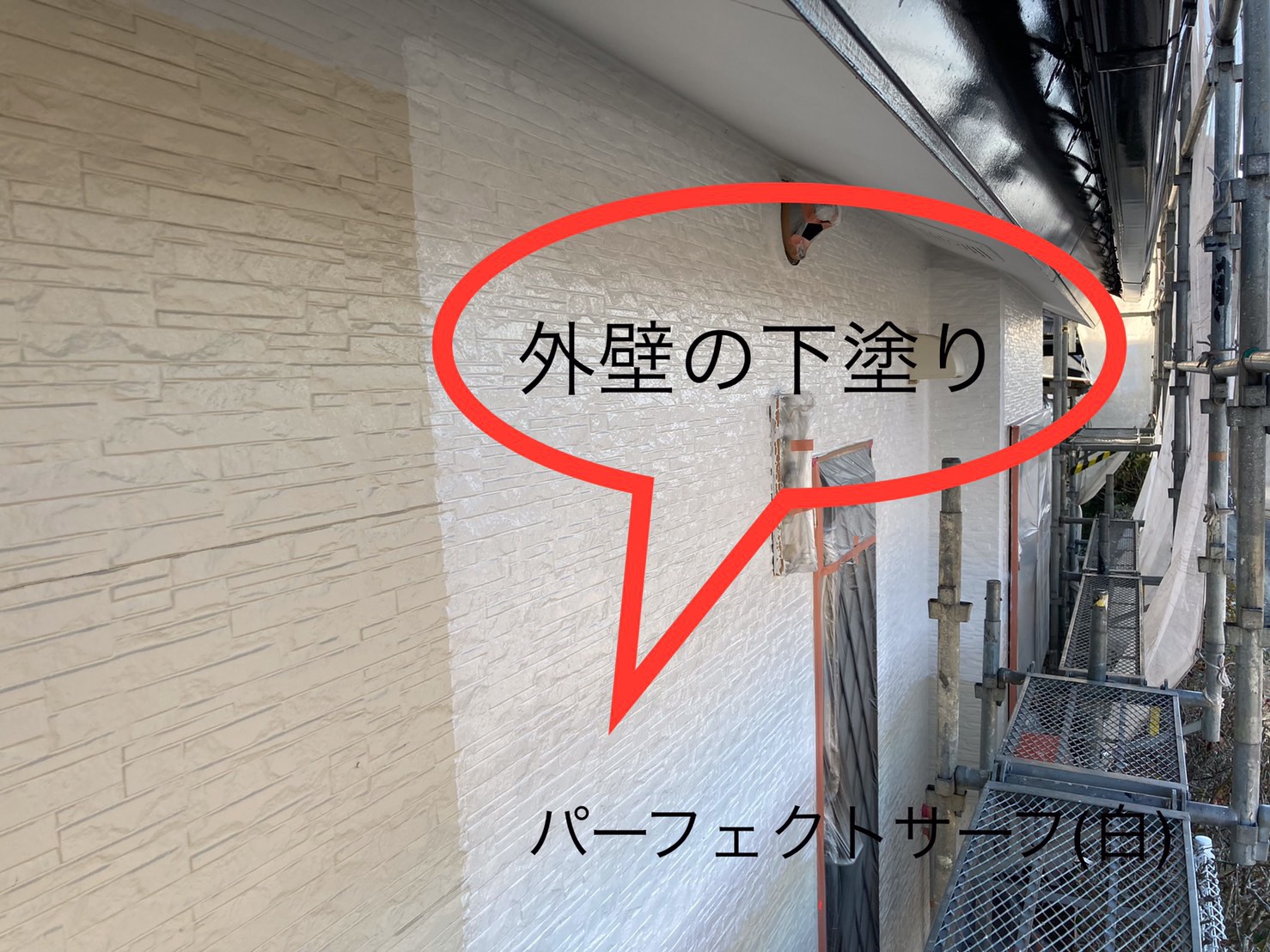 日本ペイントの窯業系サイディング専用の下塗り塗料、パーフェクトサーフを外壁に塗り重ねていきます。