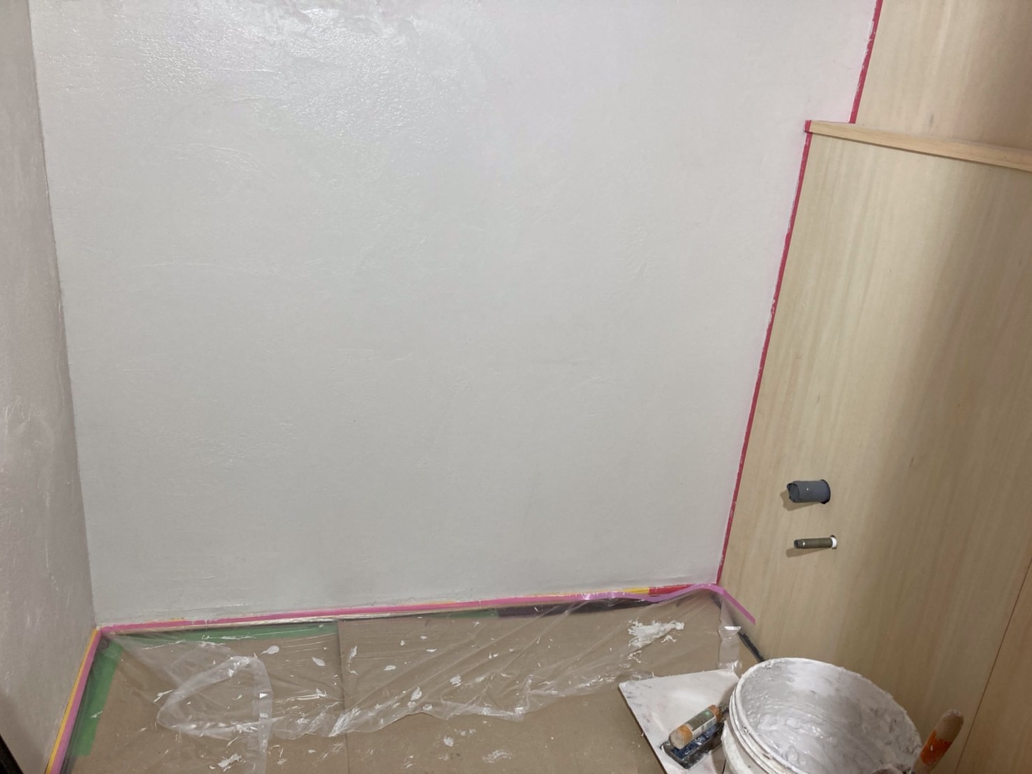 こちらの内装の壁部分は白洲漆喰で施工させていただきました。