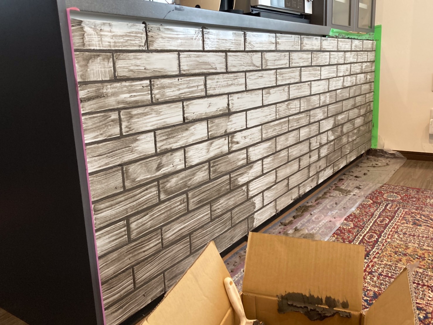 隙間は目地材をたっぷりと入れてくださいね。溢れてきた分は掬い取ってください。