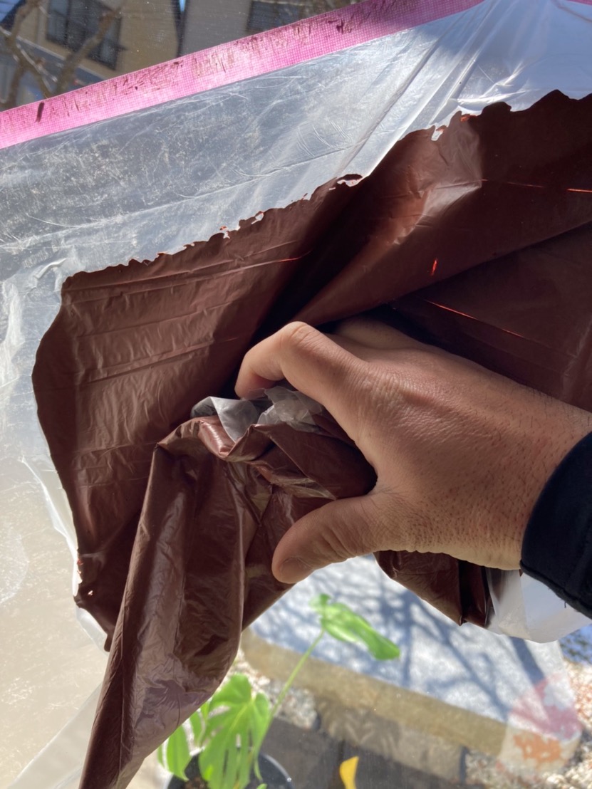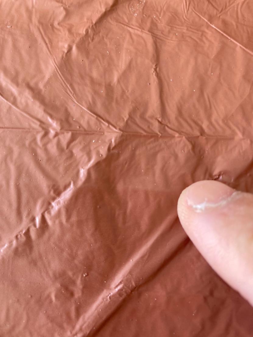 素材がビニールなので簡単に折り曲げられます。乾燥した表面を手で折り曲げてみました。