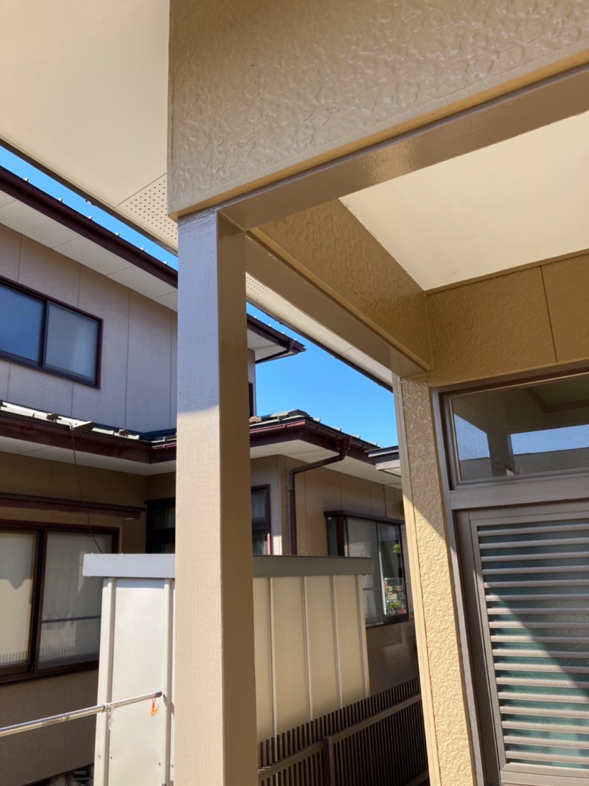 シリーズ俺の仕事!地震や雨で腐れた柱を交換して元と同じようにペイントし直しました。