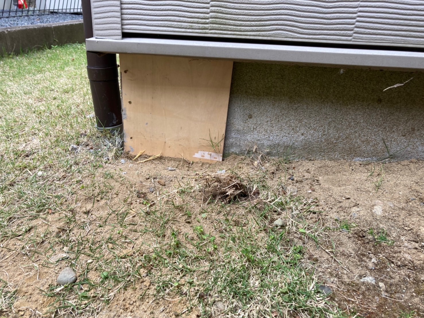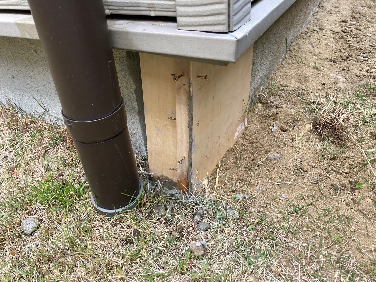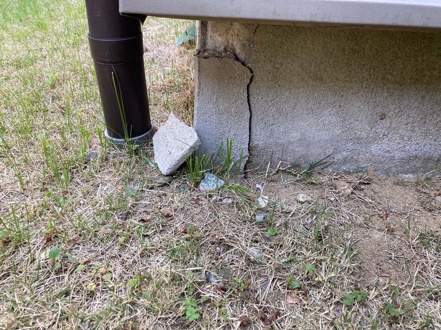 基礎コンクリートのコーナー部分が割れて、ガッポリと壊れてました。