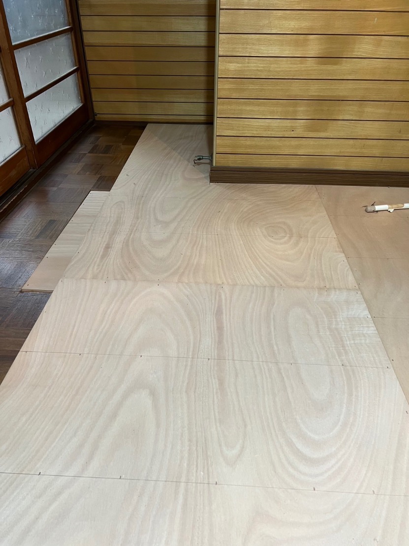 その上に新しいコンパネ材を重ね貼りで床全体の補強もしています。