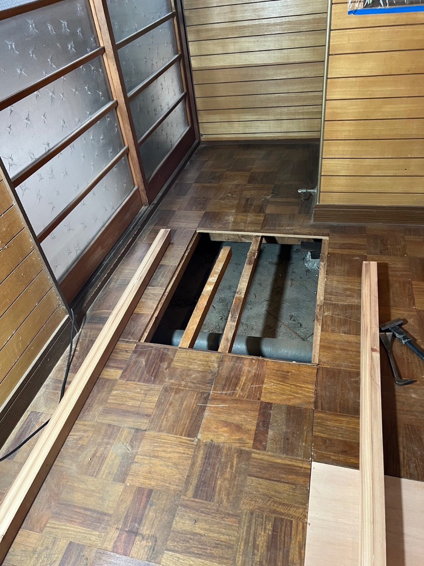 ここまで傷んでしまった場合は、床全体の修繕工事が必要になります。