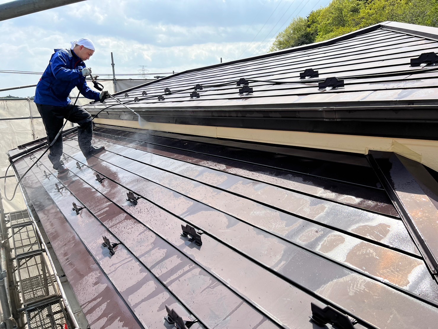 屋根、外壁、天井から雨といまで全て高圧洗浄で、汚れや苔などを洗い流していきます。