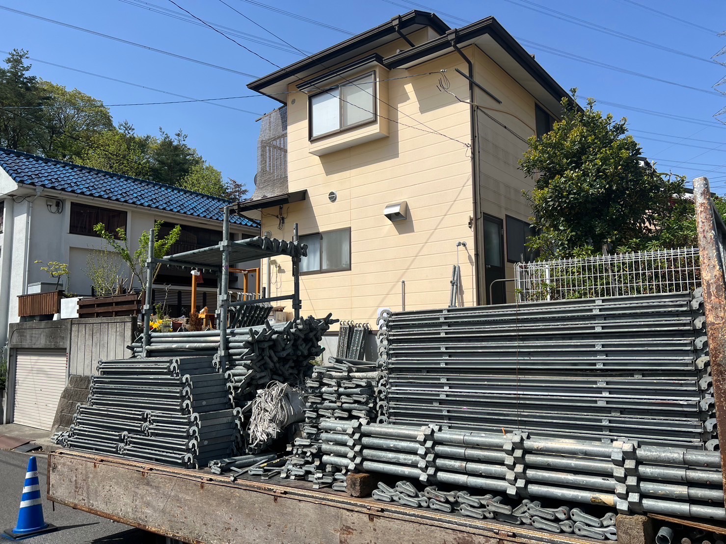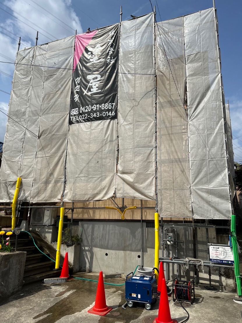 【仙台市泉区鶴ヶ丘】初日〜2日目は足場工事と洗浄で塗装の準備です。