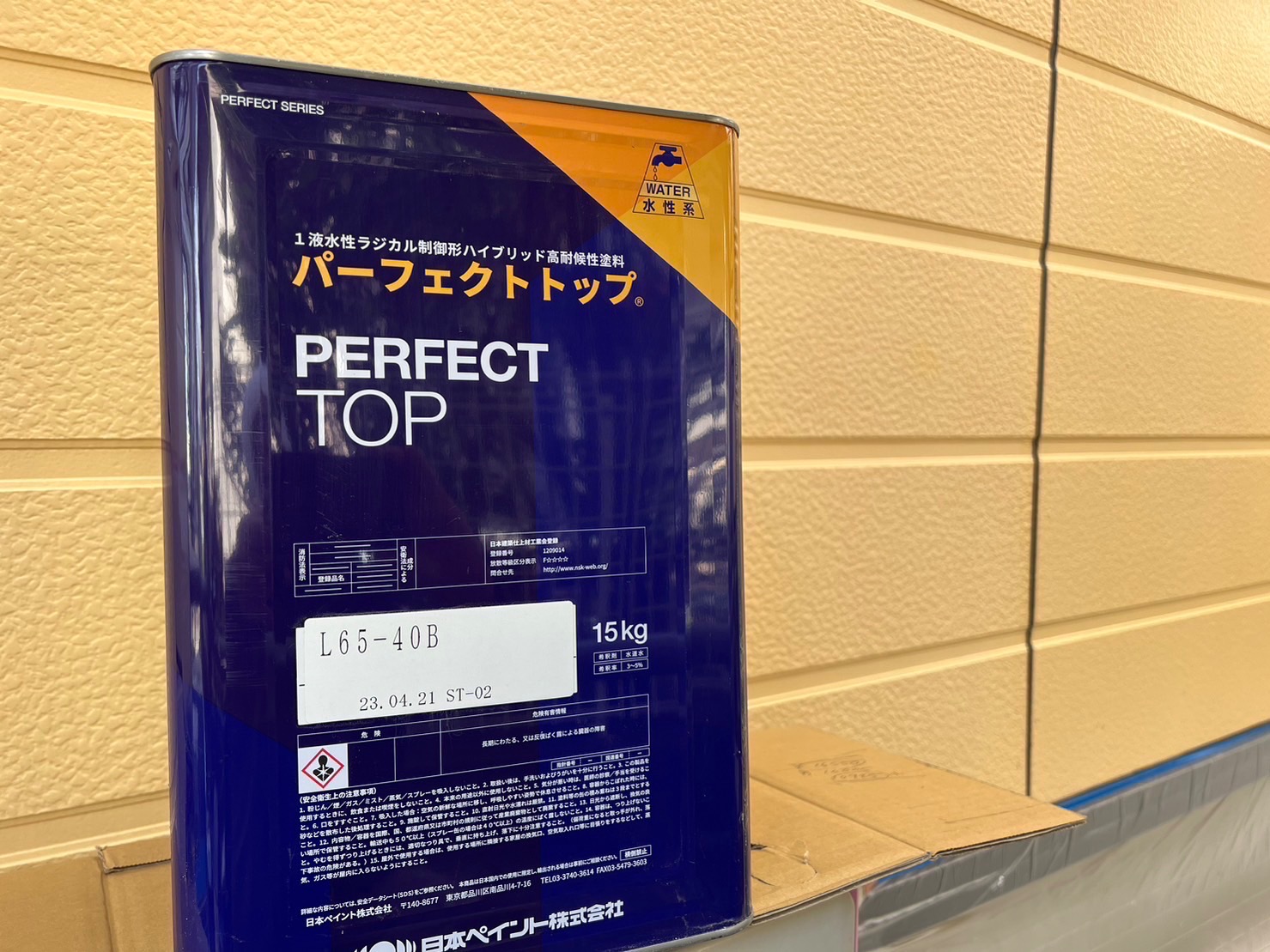 窯業系サイディングの外壁の塗装工事では仕上げ塗装に日本ペイントのパーフェクトトップを使用します。