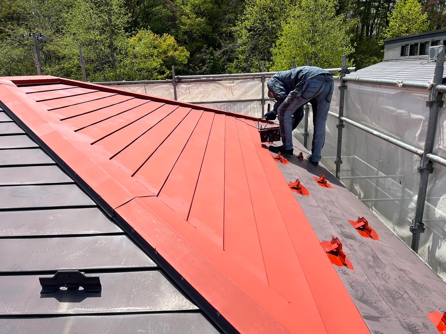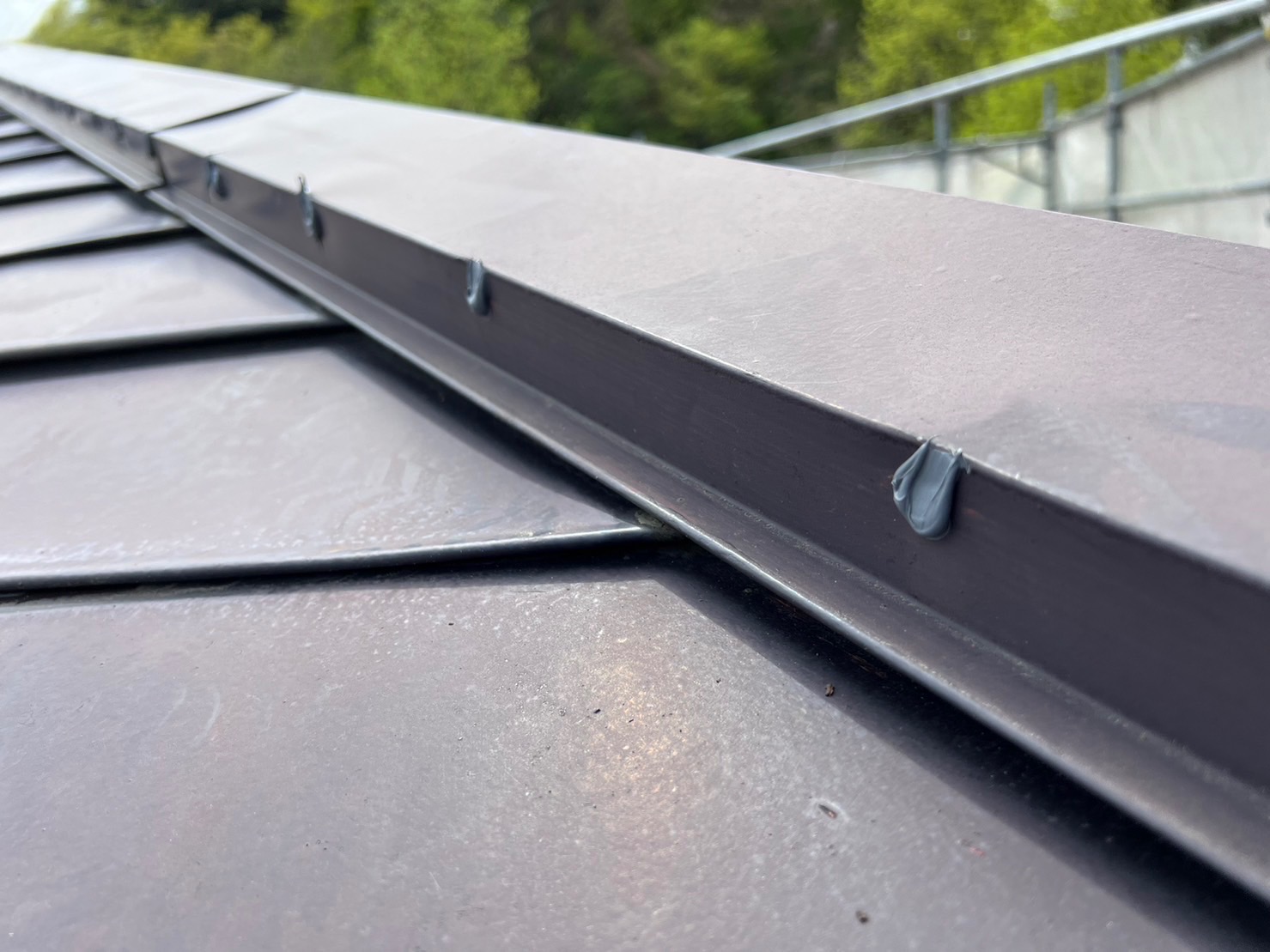 ここでのポイントは、雪止め金物の部分と、屋根の重なり目になります。