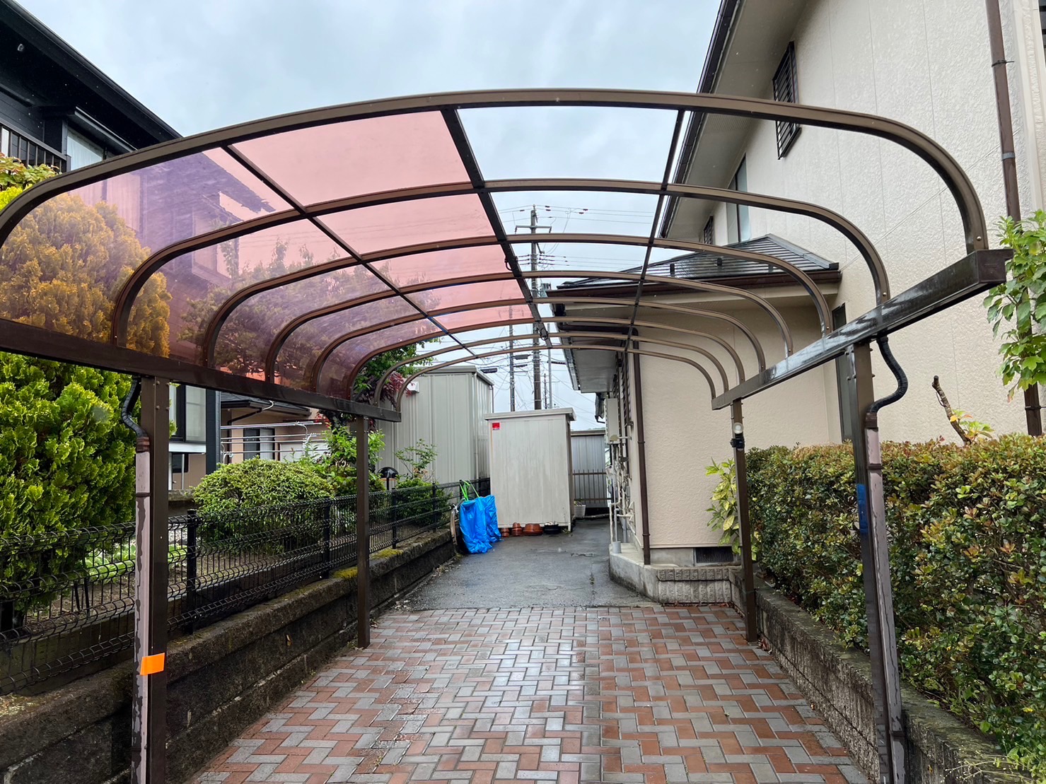【仙台市泉区】足場工事前にカーポートのポリカ屋根洗浄‼️コケ汚れをキレイにしてから外しました‼️